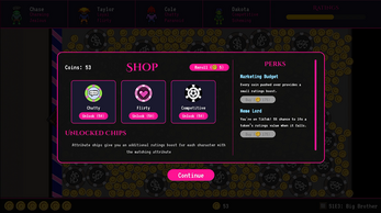 As the game progresses, you can purchase tokens matching these attributes in the shop. You can also buy different perks that provide bonuses when these attributes interact with each other.